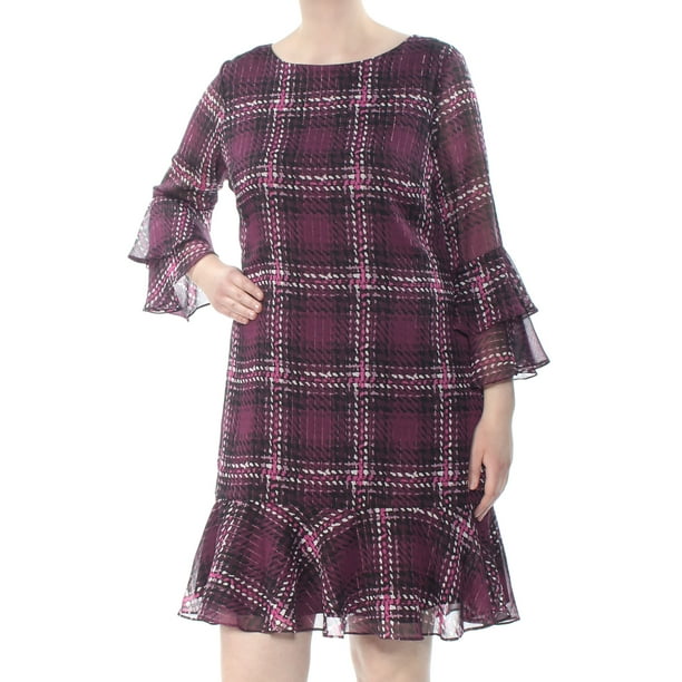 Jessica Howard 89 Womens New 1150 Purple Plaid Pleated Bell Sleeve Dress 12 B B Walmart Com
